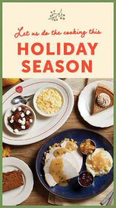 Pre-order your Take-Home Holiday Feast today! Available for pick up on December 24. Served ready to heat. Our Holiday Take-Home Feast includes: